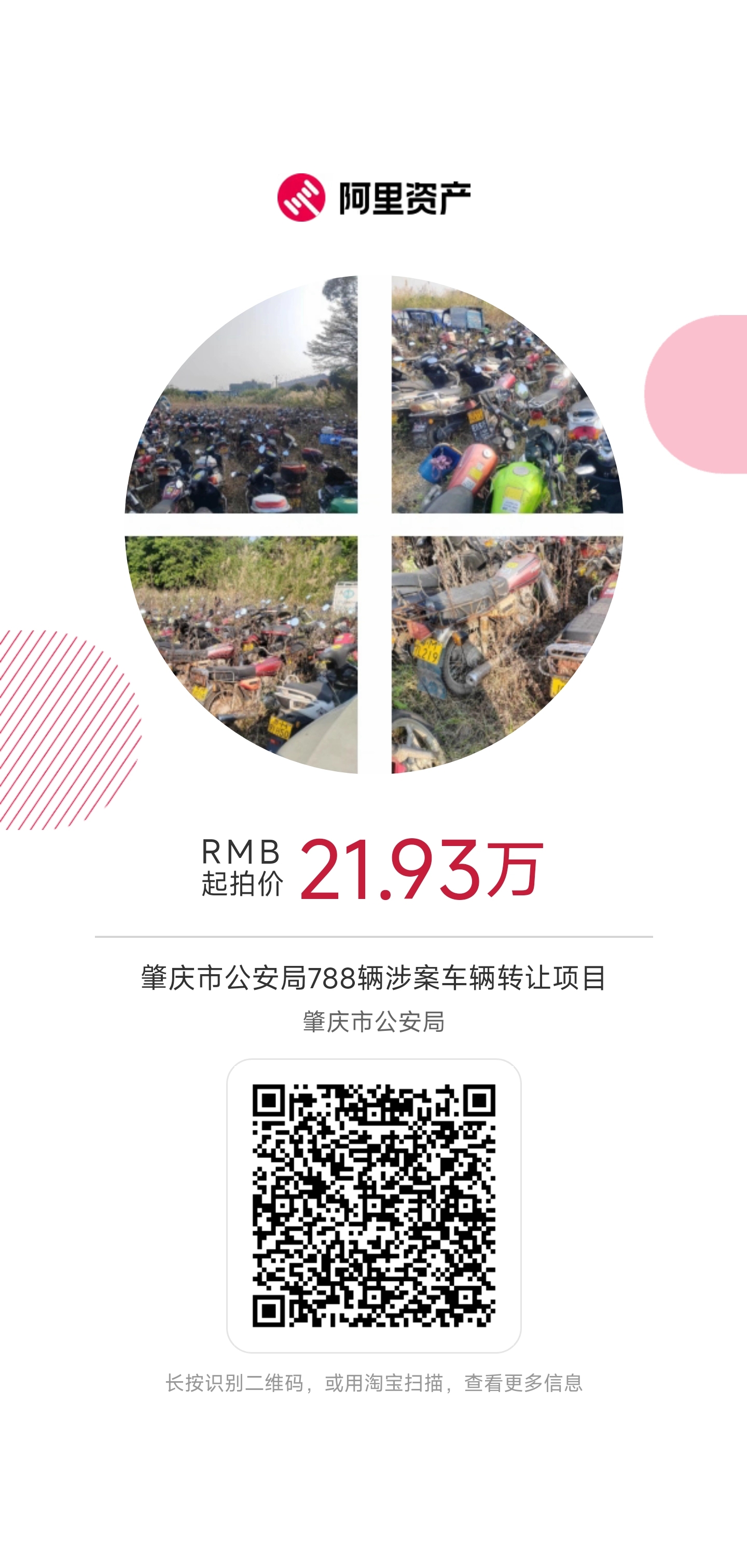 受肇慶市公安局委托(下稱委托方),肇慶市拍賣行有限公司(下稱拍賣服務商)將于20251020日上午10時至20251021日上午10時止(延時的除外)在淘寶網資產交易網絡平臺上進行公開競買活動,現公告如下: